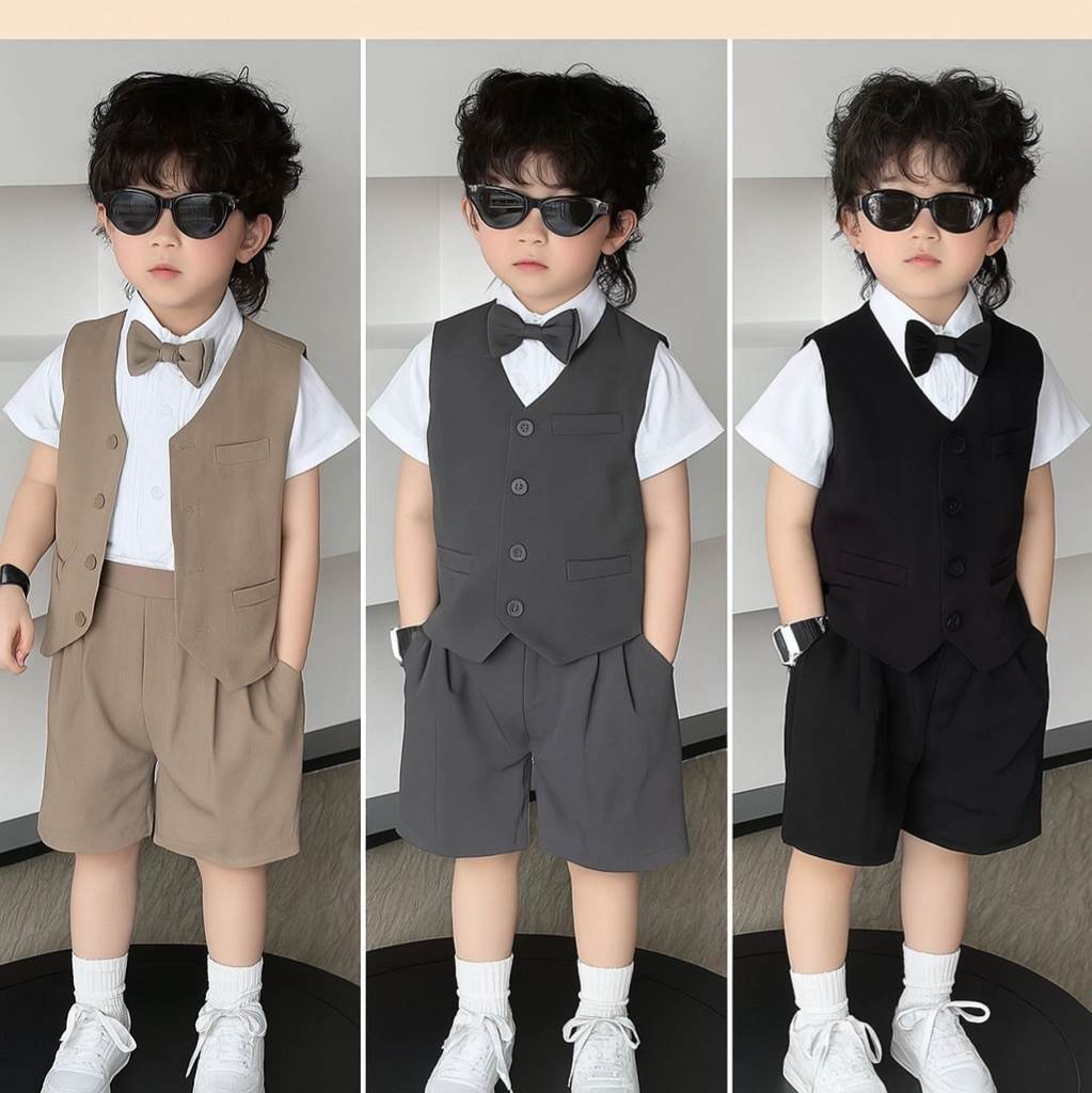 ๐ฆ Weight / Pack Size: Approx. 350g | 1 set (shirt + vest + shorts + bow tie)