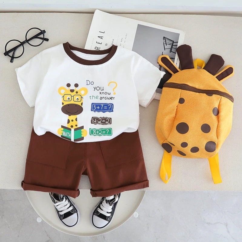 Get your little one ready for learning and adventure with this adorable Giraffe-Themed Baby Boy Outfit Set! The printed t-shirt features math problems with a cute giraffe character, paired with comfy shorts and a matching giraffe backpack โ perfect for playdates, preschool, or outings.