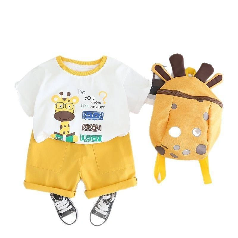 3-piece set: T-shirt + shorts + mini giraffe backpack